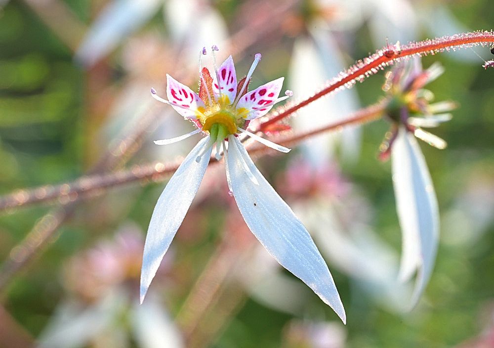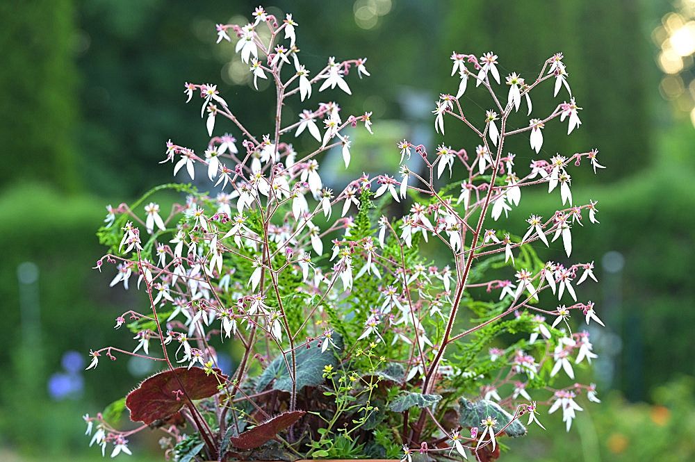 Der Hupeh-Steinbrech Ist auch als Kriech-Steinbrech, Hänge-Steinbrech oder Judenbart bekannt.
