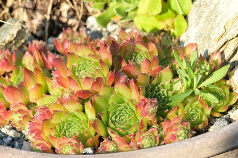 Sempervivum tectorum hingegen in den Monaten Juli und August.