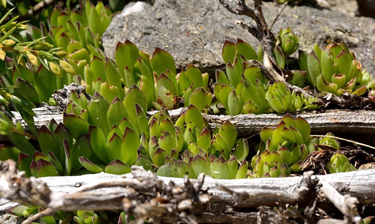 Natürlich kann man sich Tage in diesem Gebiet aufhalten, wir zogen aber schon bald etwas enttäuscht wieder ab. Waren unsere Erwartungen mit Blick auf die Blütensituation der Bergvegetation übertrieben oder hatte der ungünstige Witterungsverlauf im Frühling den Blütezeitpunkt verschoben? Wir wissen es nicht. Wir wissen aber, dass es für Pflanzenfreunde an diesem Tag wenig zu sehen gab. Ganz besonders die Foto- Ausbeute an Semperviven und Saxifragen enttäuschte. Lediglich die Großblütige Hauswurz (Sempervivum grandiflorum), allerdings in unterschiedlichen Variationen, und erstaunlich wenige Dach- Hauswurz (Sempervivum tectorum) bekamen wir vor die Kameralinse.