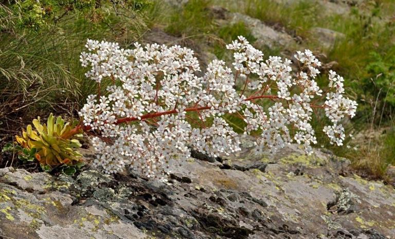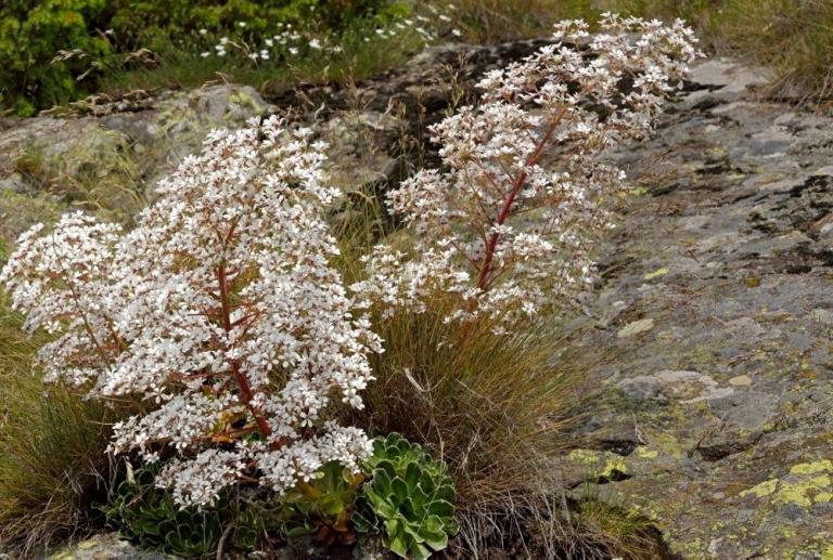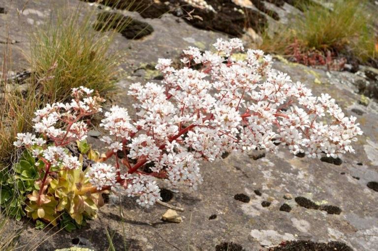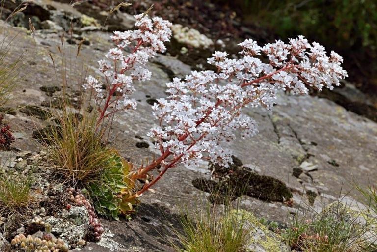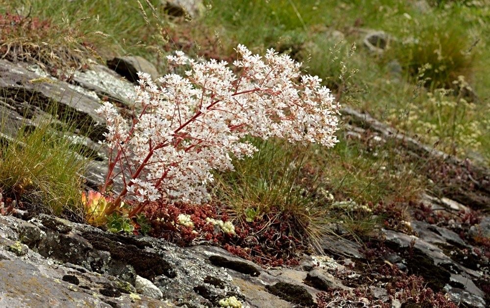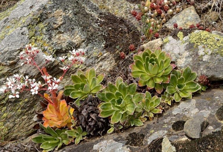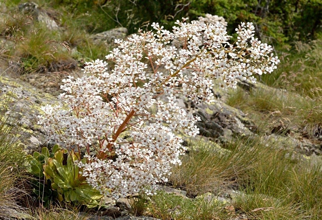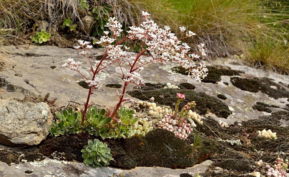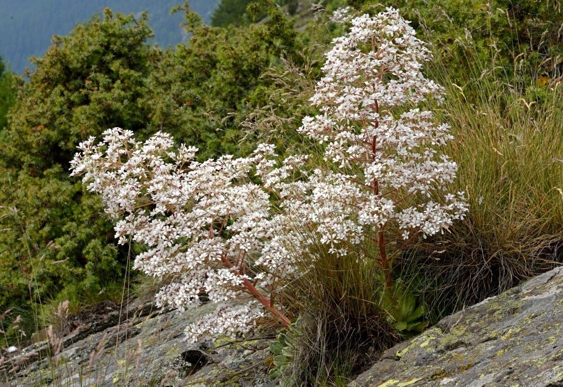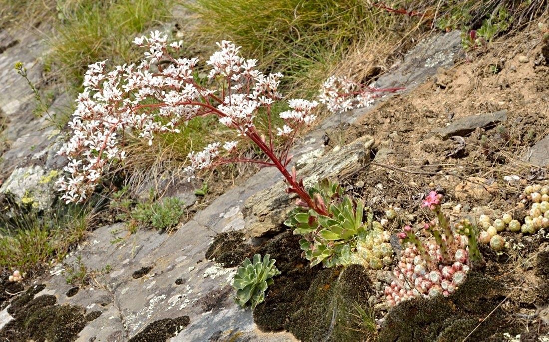 Mein Freund Lothar Mayer und ich hatten das Glück, an diesem Standort die beeindruckende Vielfalt der Natur in ihrer ganzen Schönheit zu erleben. Auf einer sonnigen Bergflanke konnten wir den majestätischen Pracht-Steinbrech (Saxifraga cotyledon) und die filzige Spinnweb-Hauswurz (Sempervivum arachnoideum ssp. tomentosum) bewundern, die in perfekter Harmonie miteinander wuchsen. Unsere Freude kannte keine Grenzen, als wir auch noch die wunderschönen Blütenstände von Saxifraga cotyledon 'Pyramidalis' in der Nähe entdeckten. Die prächtige Blüte des Pracht-Steinbrechs hat uns fasziniert und wir waren uns sofort einig, dass dies zweifellos der Höhepunkt unserer Entdeckungstour war.