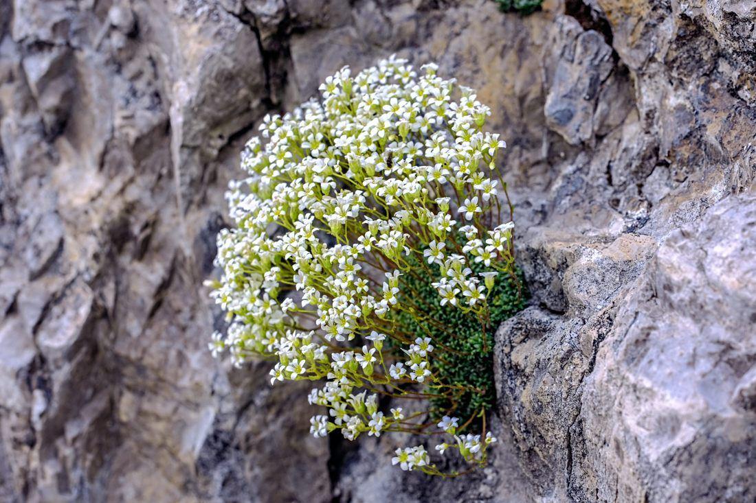 Möglich wäre es aber auch, daß im Falle dieser Art sich etwas Ähnliches zugetragen hat, wie bei Sempervivum soculense. Man hat die Unterschiede nicht gesucht und damit auch nicht gefunden und Saxifraga squarrosa – den Sparrige Steinbrech – als Saxifraga caesia verkannt.Dabei ist die Unterscheidung recht einfach. Die Blattunterseiten von Saxigfraga caesia zeigen sieben, die von Saxifraga squarrosa nur fünf (3?) Kalkgrübchen. Zur schnelleren Bestimmung eignen sich die Grundblätter, die an den Spitzen leicht nach oben gebogen sind.