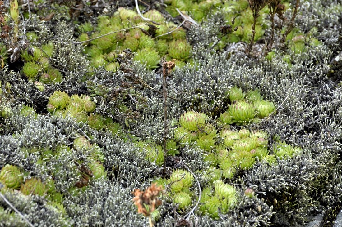 Sempervivum globiferum ssp. arenarium und dem silbrig-glänzenden Hedwigsmoos