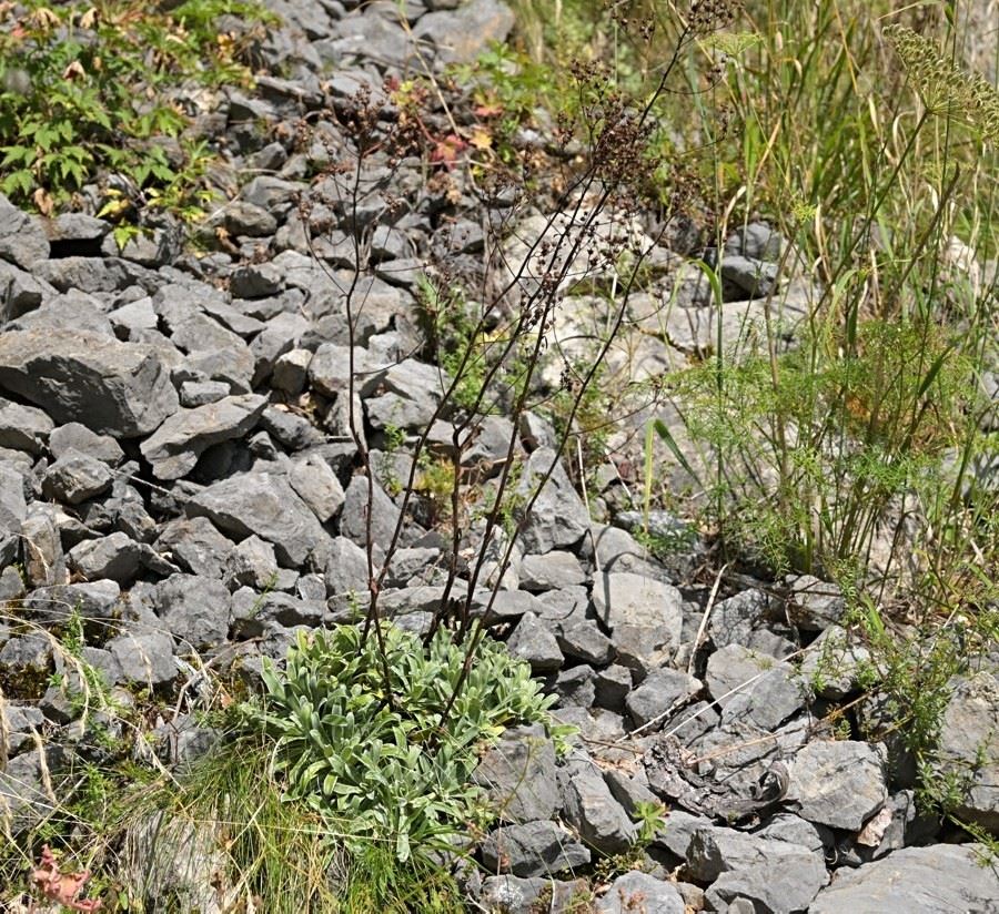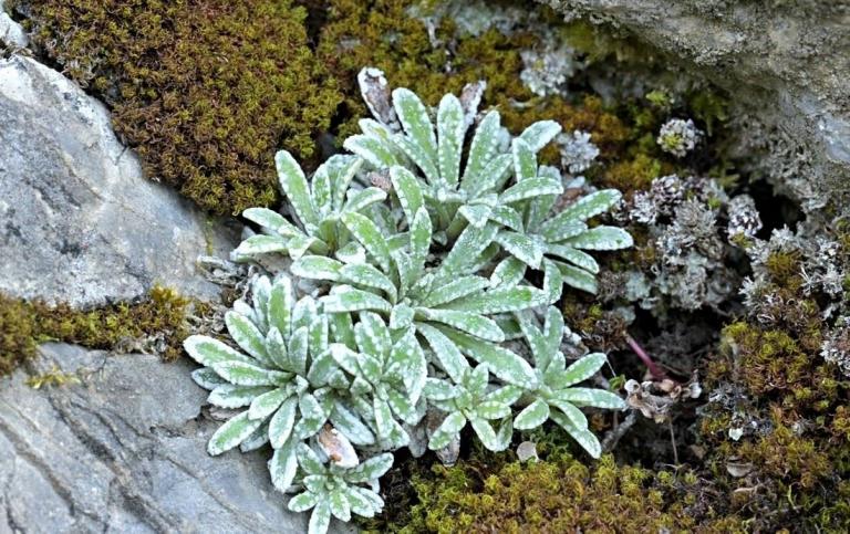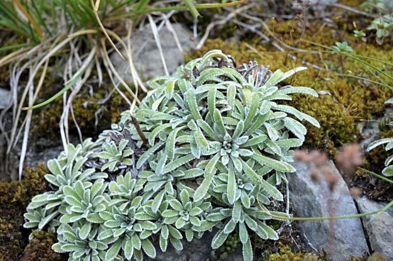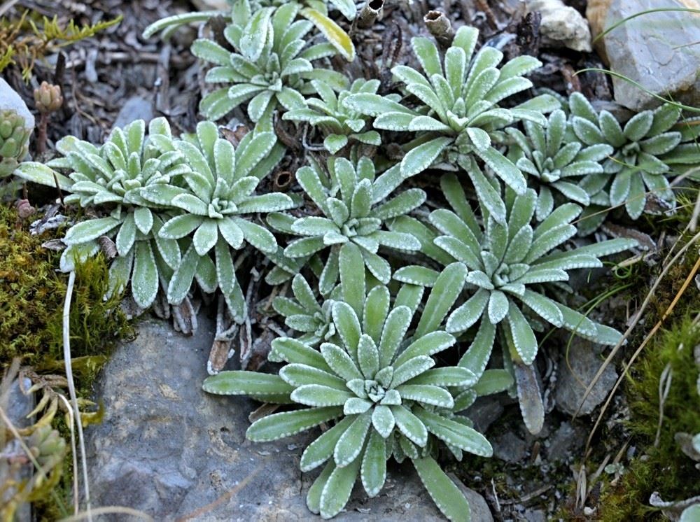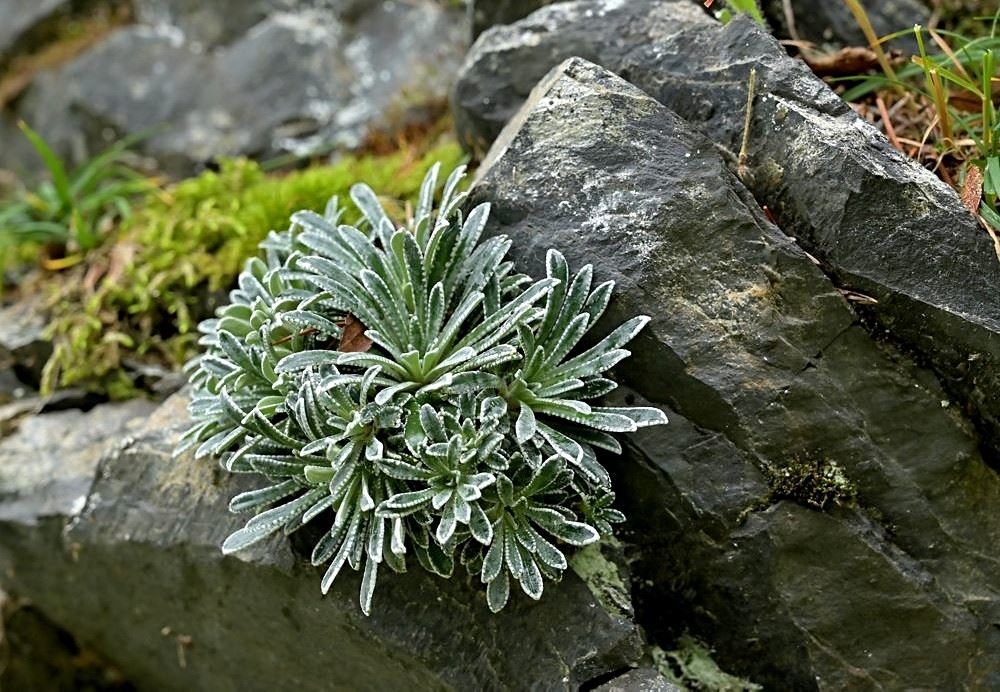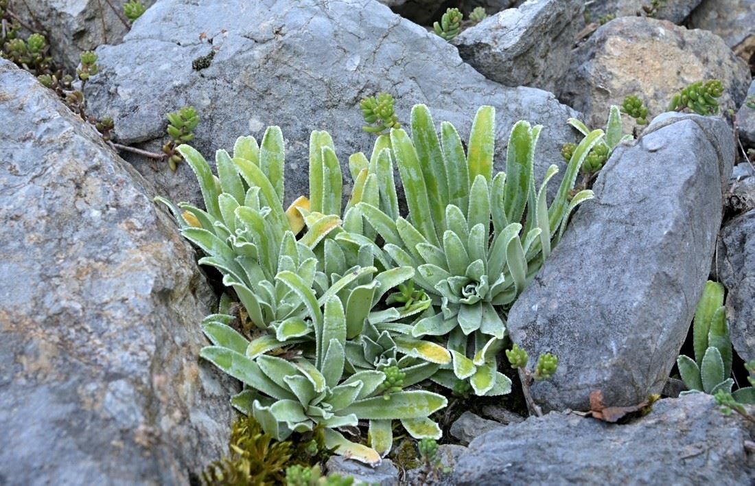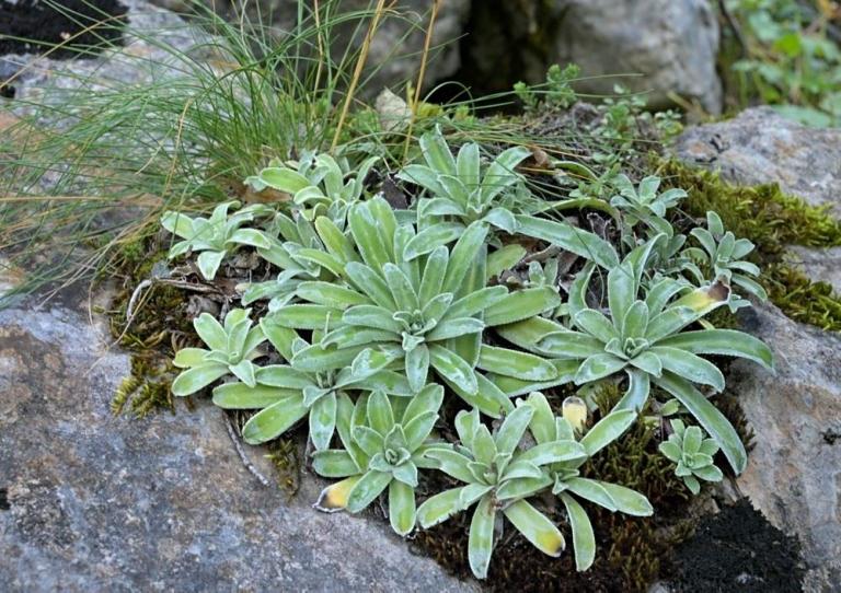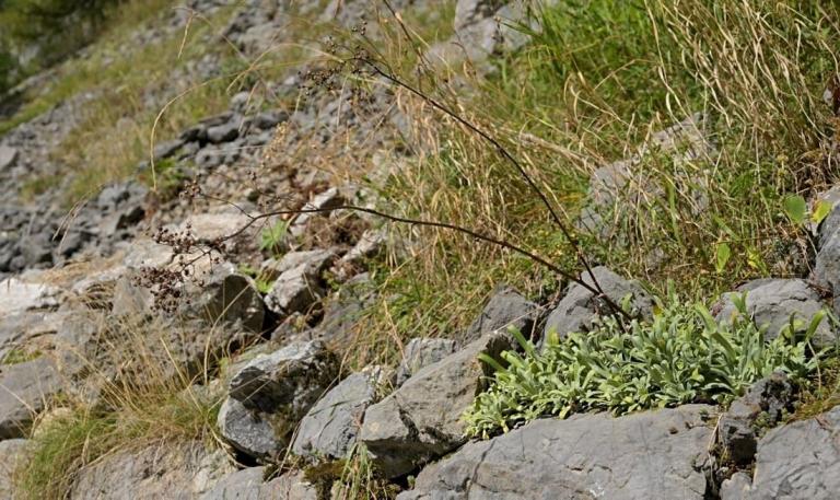 Besonders interessiert waren wir an der Saxifraga hostii, auch bekannt als Host-Steinbrech. Es heißt, dass diese Pflanze hier am Plöckenpass besonders große Rosetten und außergewöhnlich hohe Blütenstände ausbildet. Wir hofften, diese besondere Form zu finden. Wir wussten auch, dass Saxifraga crustata-der Krusten-Steinbrech hier ebenfalls einen Lebensraum hat.