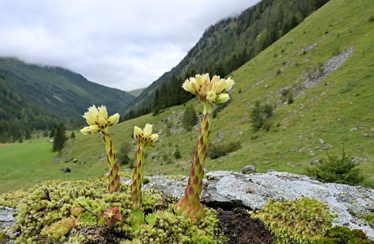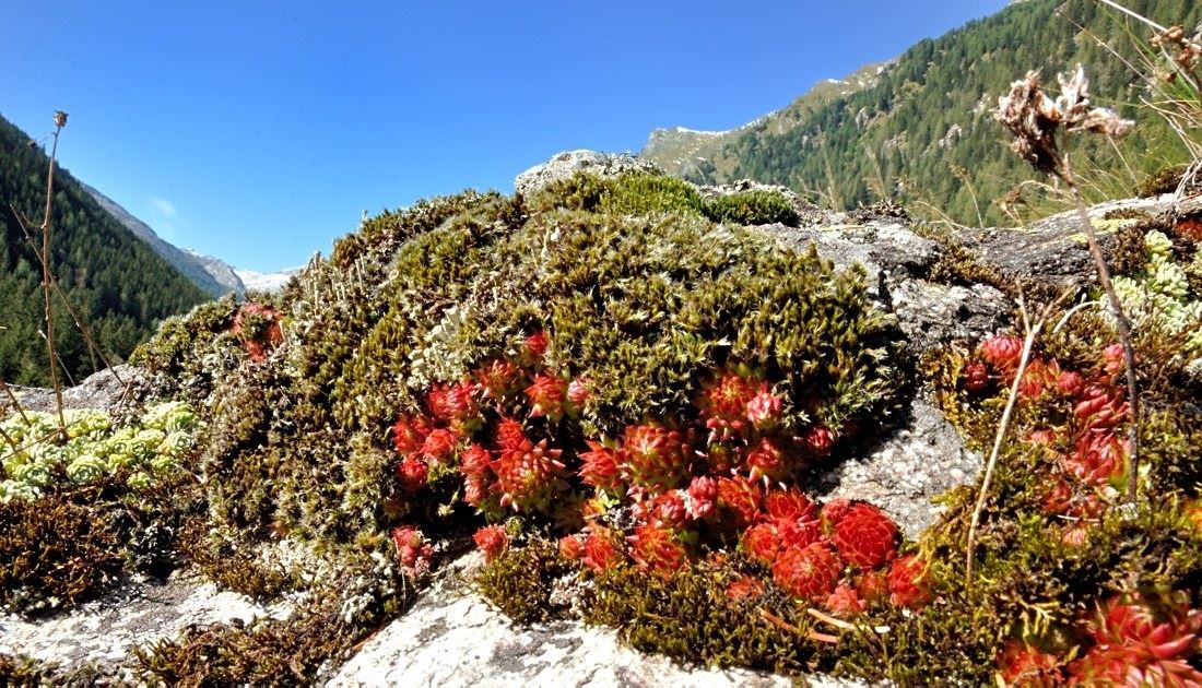 In den letzten 20 Jahren habe ich das Pöllatal oft besucht und war jedes Mal von den wunderschönen Semperviven und Saxifragen fasziniert, die ich mit großer Begeisterung fotografiert habe. Es gibt selten mehr Farb- und Formenreichtum bei Semperviven als hier. In den letzten Jahren haben sich die Lebensumstände der Hauswurze und Steinbreche jedoch verschlechtert, und viele Pflanzen sind verschwunden. Der Klimawandel könnte eine Ursache sein, da die Winter kürzer werden und dadurch die Wachstumszeit der Flechten und Moose verlängert wird, was dazu führt, dass die Semperviven nicht mithalten können und erstickt werden.