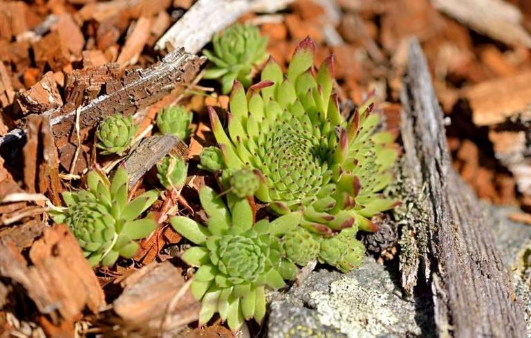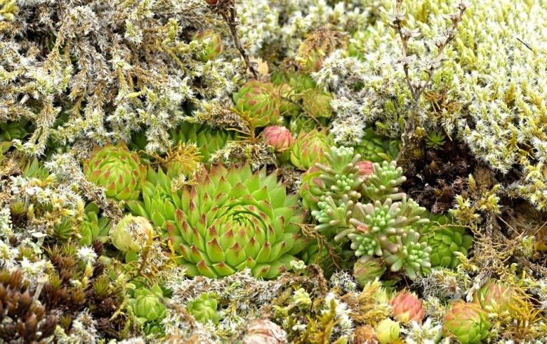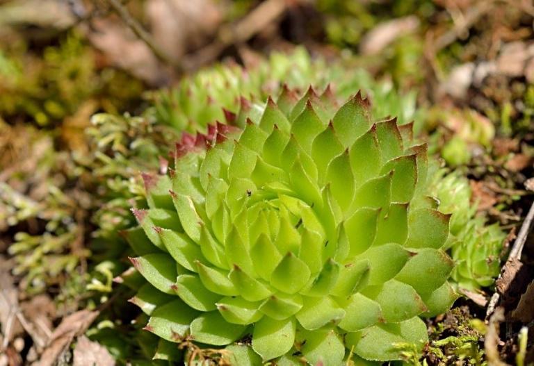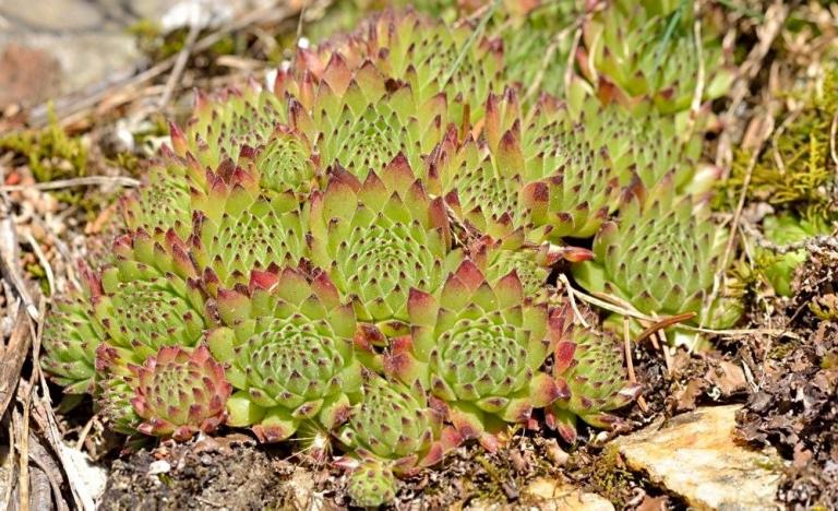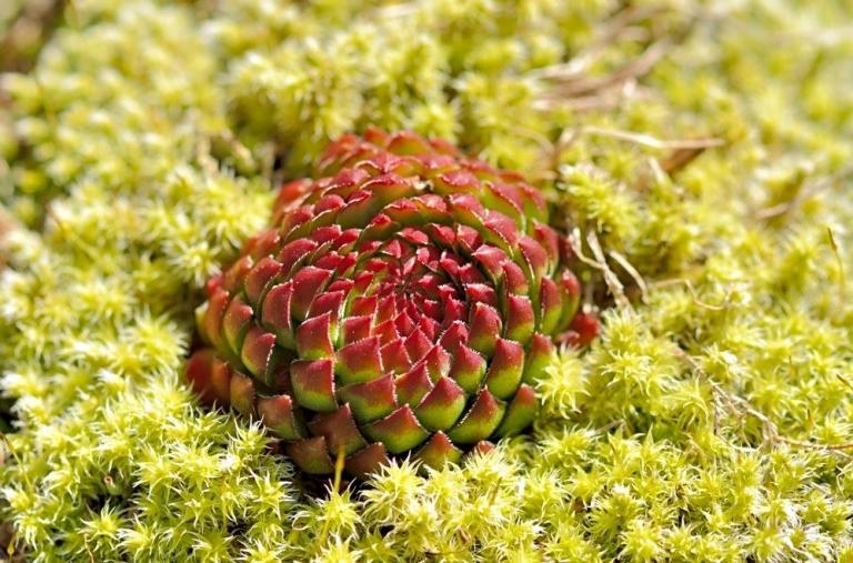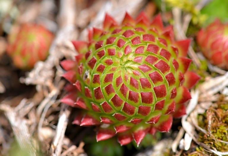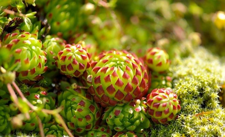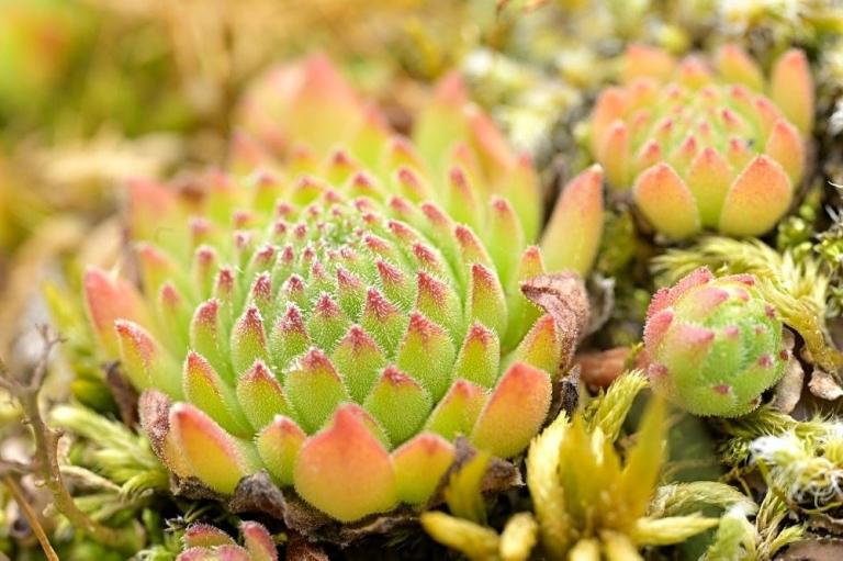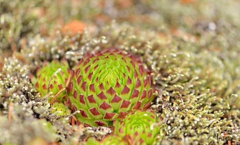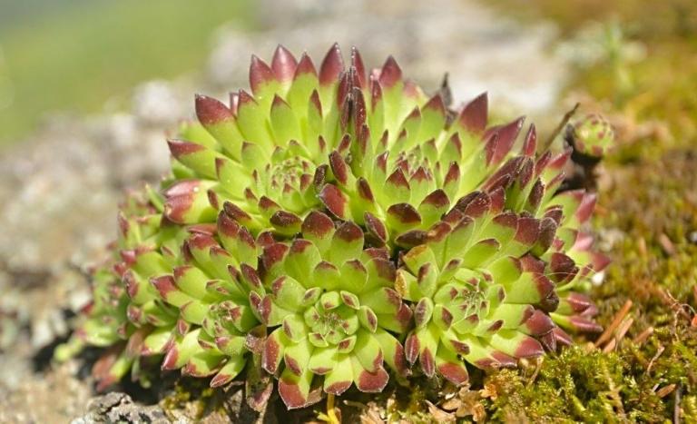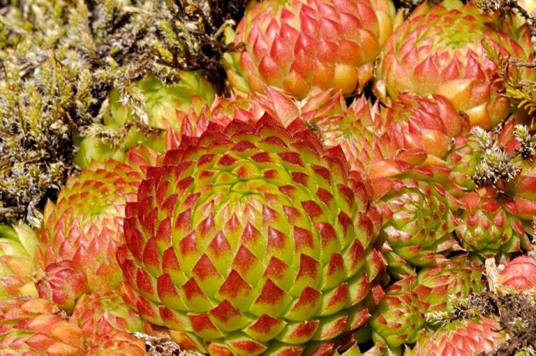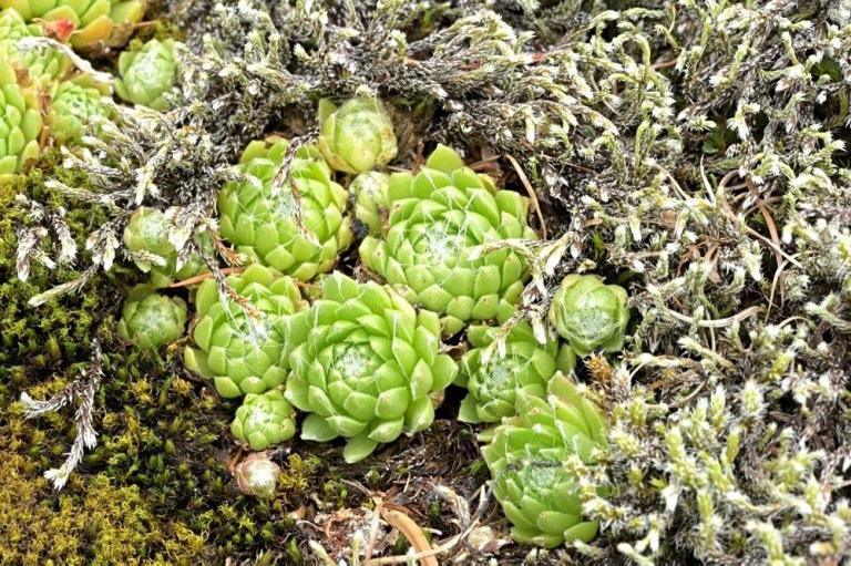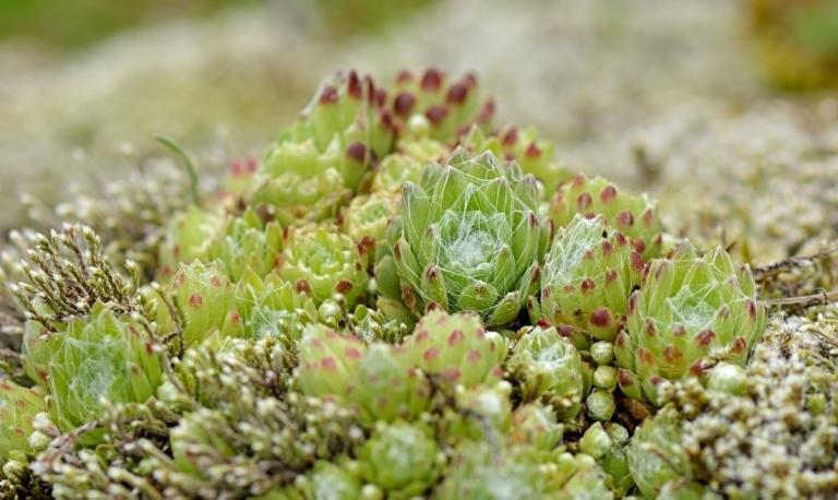 Die Sommer werden immer heißer und trockener, was für Semperviven und Saxifragen an sonnigen Standorten eine große Herausforderung darstellt. Eine bewährte Überlebensstrategie, die man beobachten kann, ist es, sich im Sommer von Gräsern oder kleinen Sträuchern überwuchern zu lassen, um vor der intensiven Sonne geschützt zu sein. Dadurch erhalten die Pflanzen im Frühjahr genügend Licht durch die abgestorbenen Gräser, das sie für die Fotosynthese benötigen. Im Sommer sind die Semperviven oft kaum sichtbar, da sie von den Gräsern verdeckt werden, und ihre Anwesenheit zeigt sich häufig nur noch an den herausragenden Blütenstängeln.