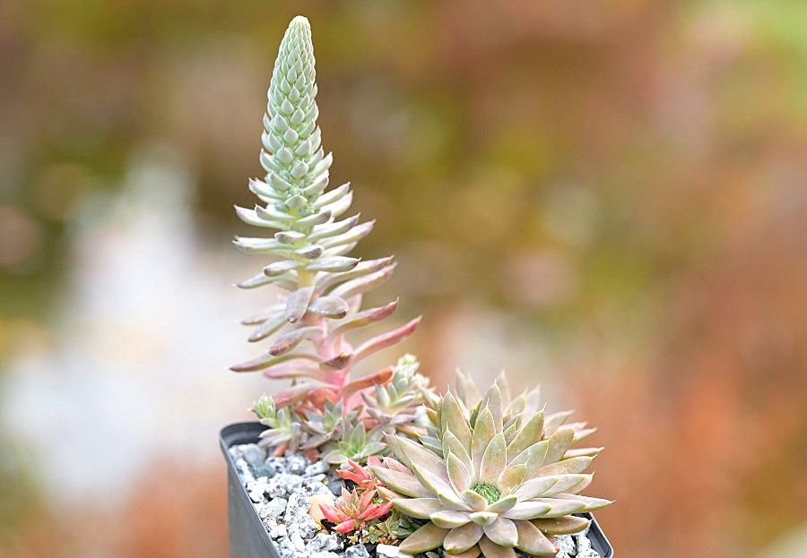 Oberflächen-Schicht: Es empfiehlt sich, eine zusätzliche Schicht aus reinem Kies oder Splitt direkt um den Hals der Rosette (die Erdoberfläche) aufzubringen. Dies verhindert, dass die unteren Blätter auf feuchter Erde aufliegen und faulen.