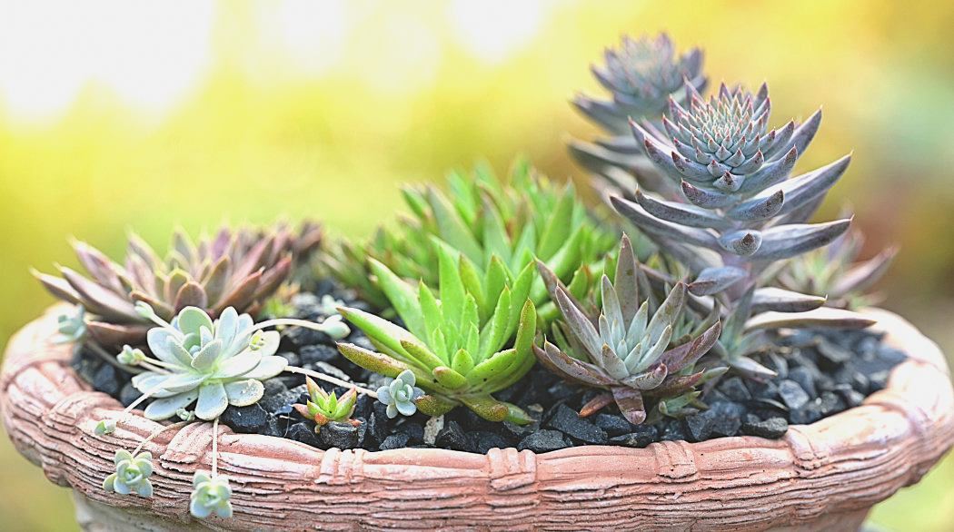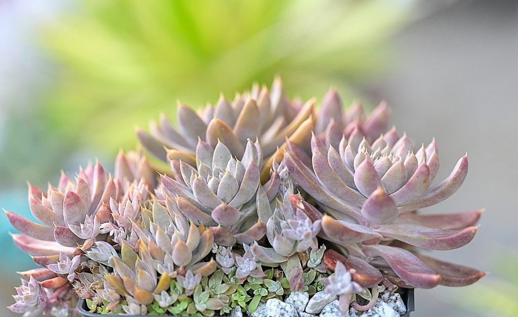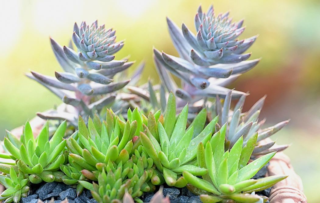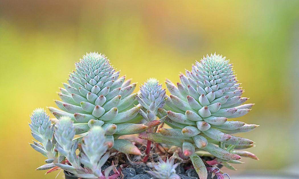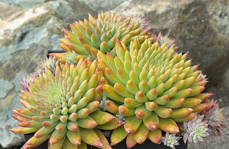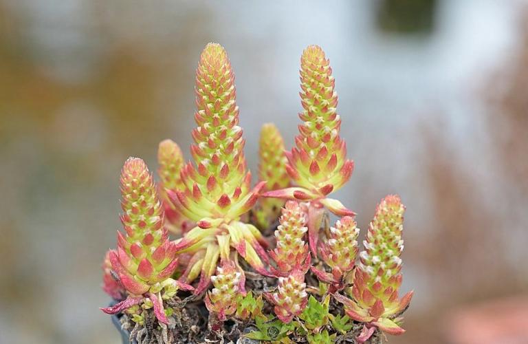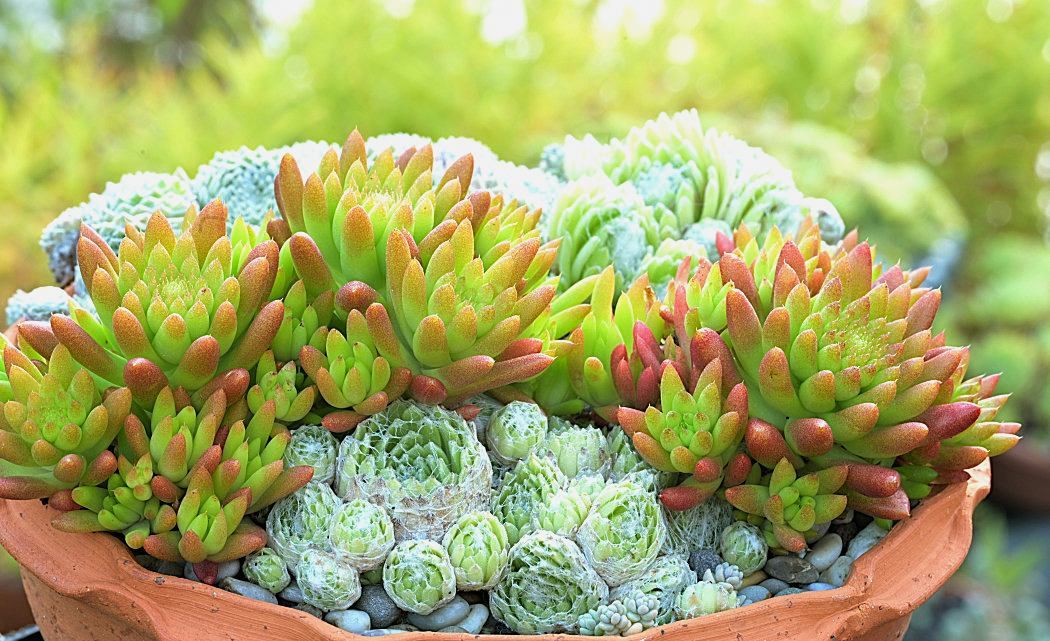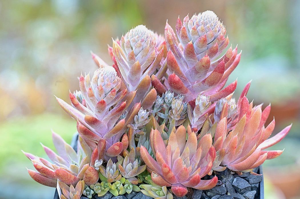 Ein harmonisches Arrangement verschiedener Sternwurz-Arten: Orostachys japonica, O. fimbriata und O. malacophylla var. Iwarenge.
