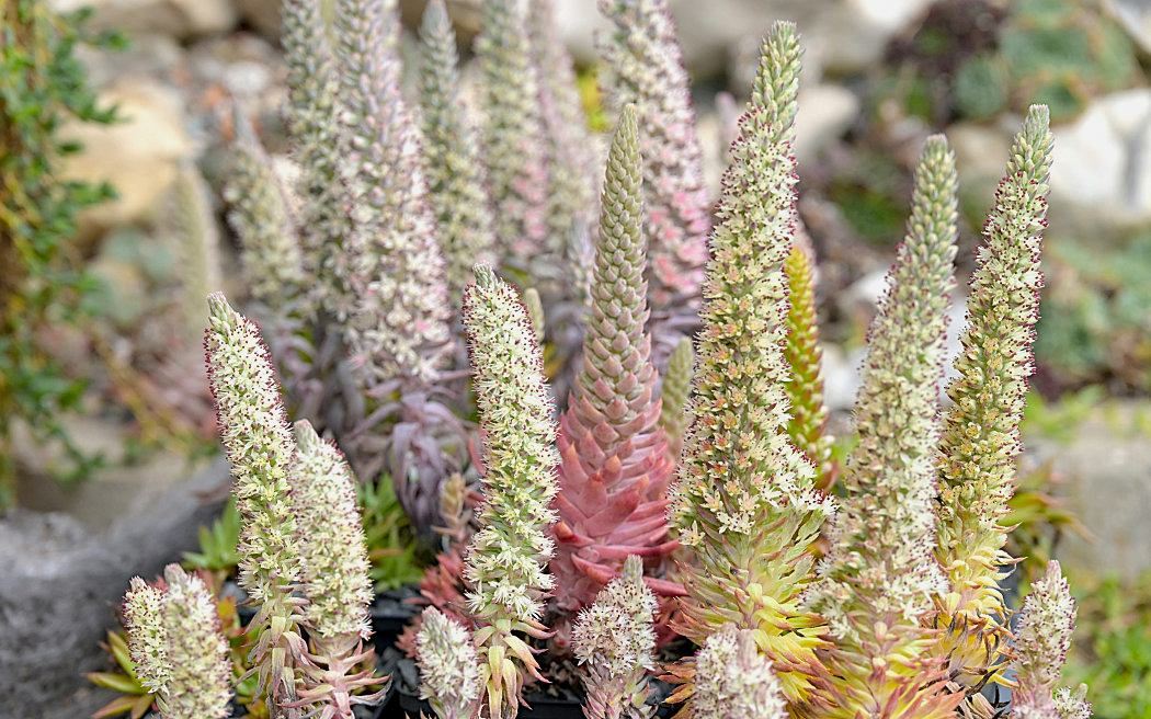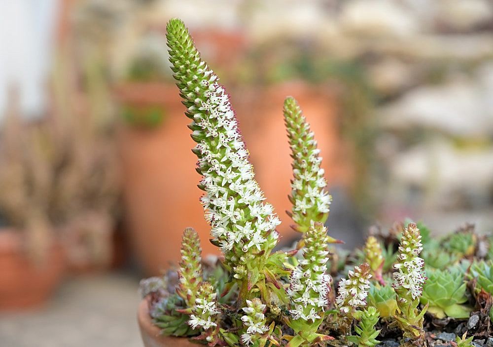 Blüten von unterschiedlichen Orostachys japonica und Orostachys fimbriata.