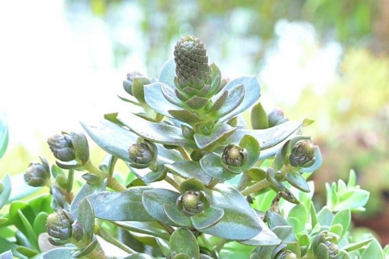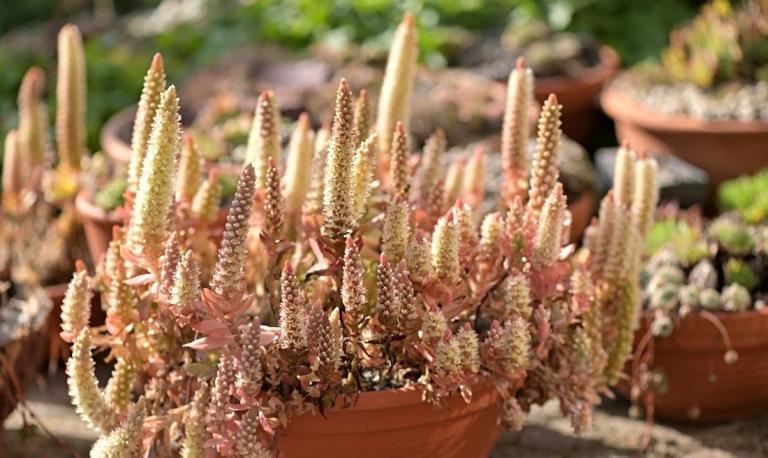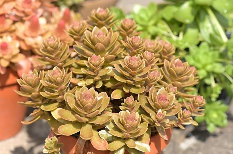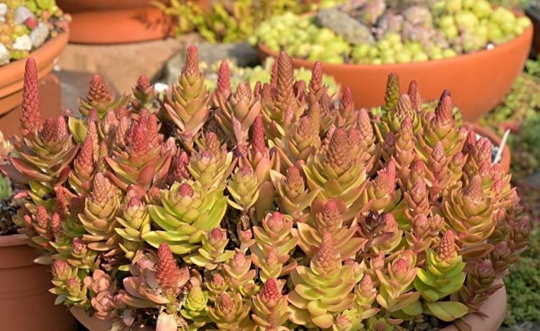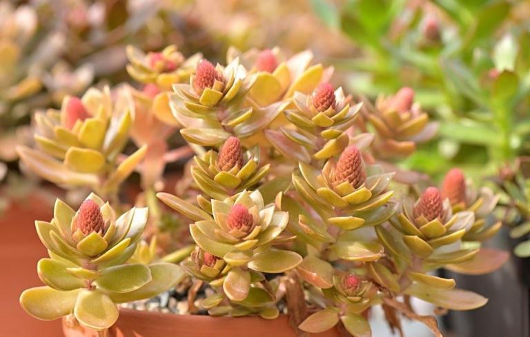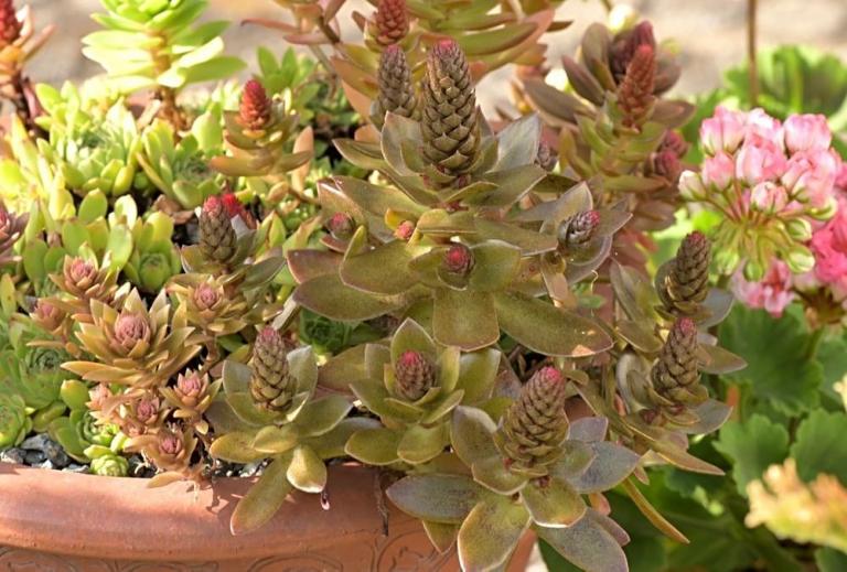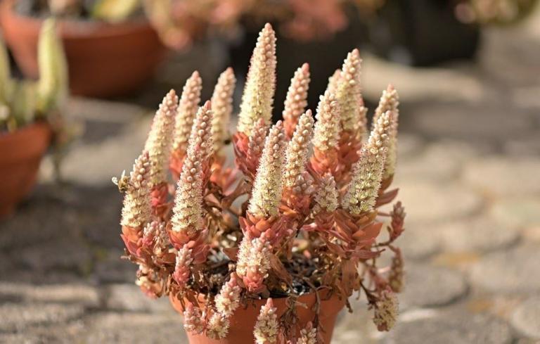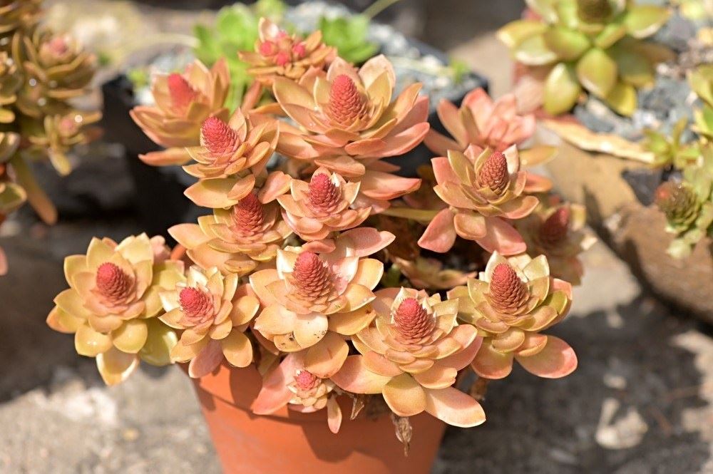 Durch einen glücklichen Zufall tauchte O. maximowiczii als unbekannter Sämling in einem mit Orostachys bepflanzten Topf bei mir auf. Anfangs konnte ich den Sämling, der immer schöner und größer wurde, keiner mir bekannten Pflanzenart zuordnen. Im August entwickelten sich aus den Rosetten kleine rote Zäpfchen, die sehr schön aussahen. Damals dachte ich, dass dies die Blüten der mir immer noch unbekannten Sukkulente seien.