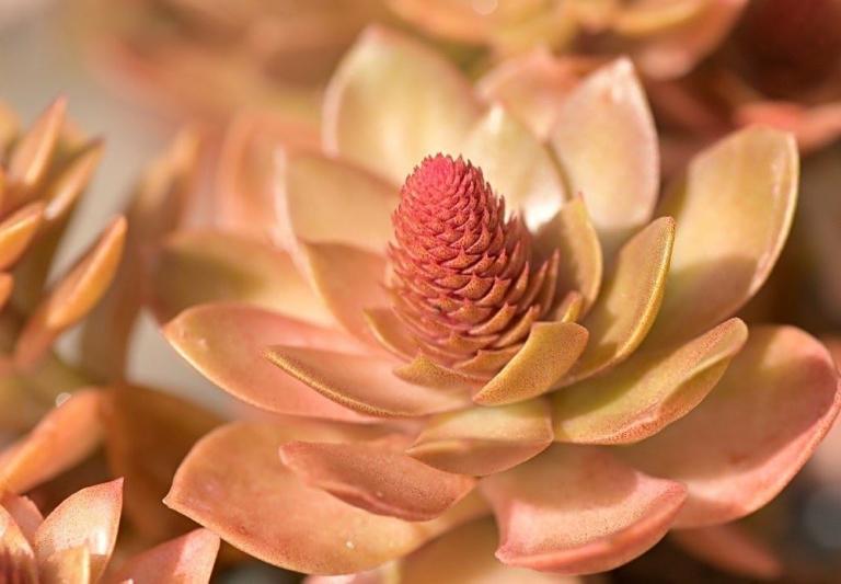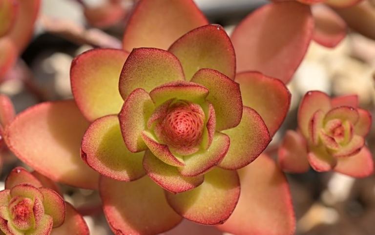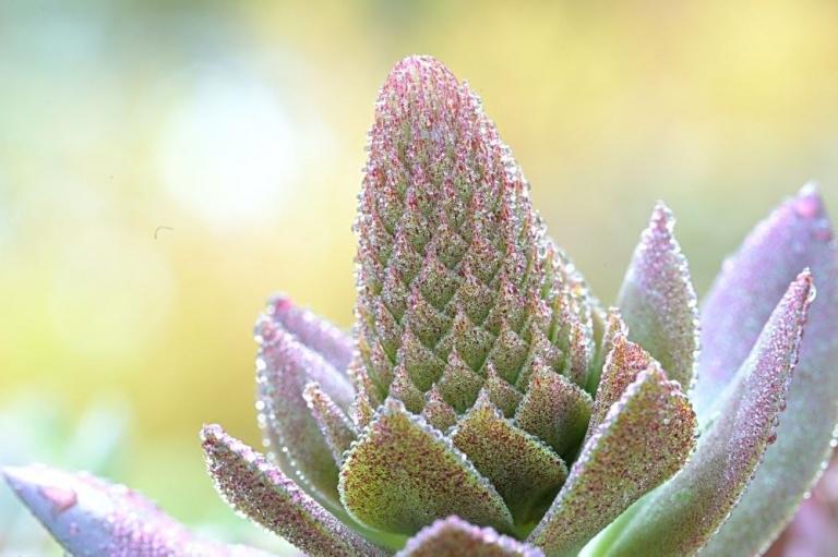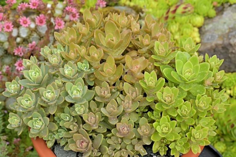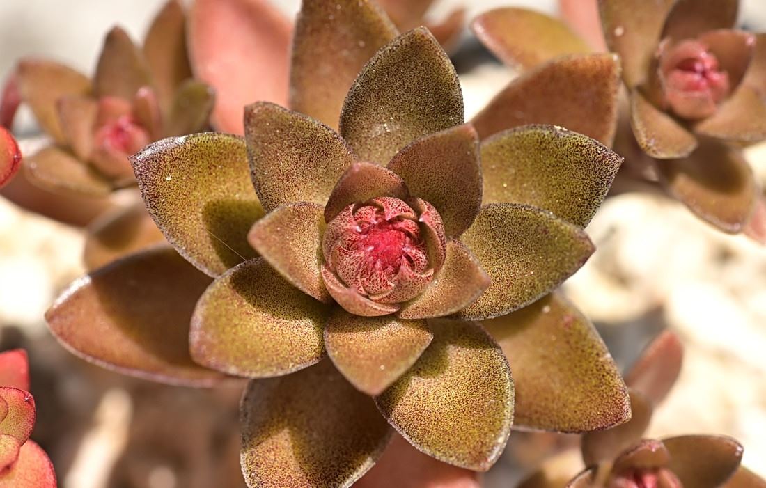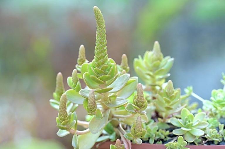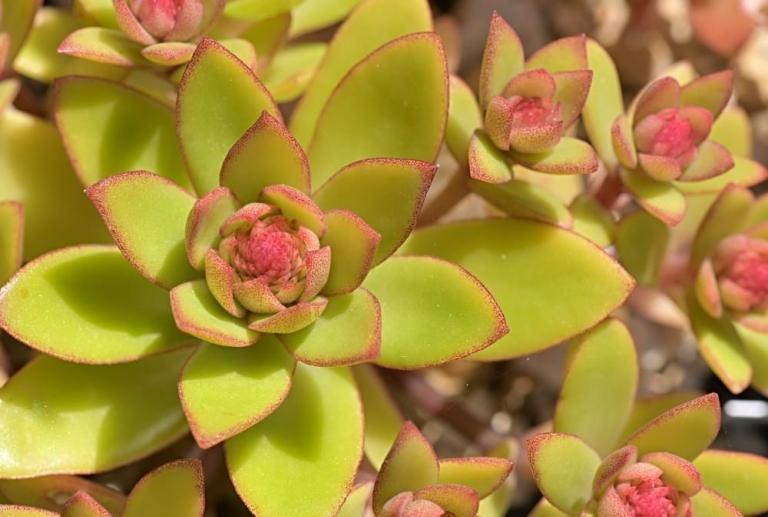 Durch einen glücklichen Zufall tauchte O. maximowiczii als unbekannter Sämling in einem mit Orostachys bepflanzten Topf bei mir auf. Anfangs konnte ich den Sämling, der immer schöner und größer wurde, keiner mir bekannten Pflanzenart zuordnen. Im August entwickelten sich aus den Rosetten kleine rote Zäpfchen, die sehr schön aussahen. Damals dachte ich, dass dies die Blüten der mir immer noch unbekannten Sukkulente seien.