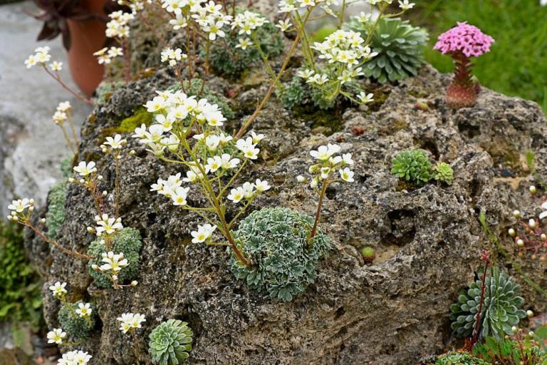 Das kann ich nur bestätigen. Allerdings hat dieser Vorteil auch seine Kehrseite. Denn ähnlich wie bei den Semperviven gilt auch für die Saxifragen, dass jede Rosette irgendwann blühen wird. So erfreut man sich zunächst an einem schönen Polster von S. catalaunica, doch nach etwa vier bis sechs Jahren zeigen sich zum ersten Mal die bezaubernden Blüten des Katalonischen Steinbrechs. Ab diesem Zeitpunkt blühen Jahr für Jahr immer mehr Rosetten, und wenn man nicht bereits vorher durch Ableger oder Aussaat für Nachschub gesorgt hat, kann S. catalaunica schnell aus dem Garten verschwinden.