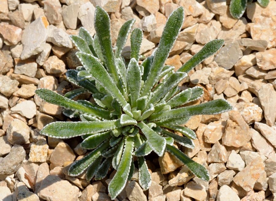 Die erfolgreiche Kreuzung zwischen Saxifraga catalaunica und Saxifraga callosa hat einen besonders schönen Sämling hervorgebracht, den Adrian Young Saxifraga x rothmeierae 'Humpty Dumpty' genannt hat.