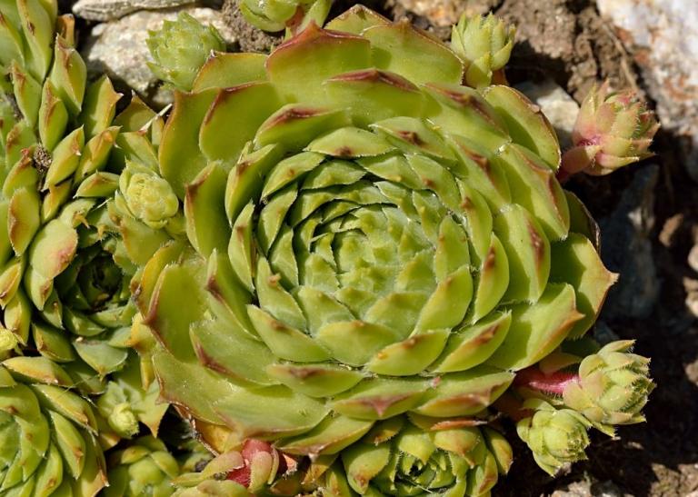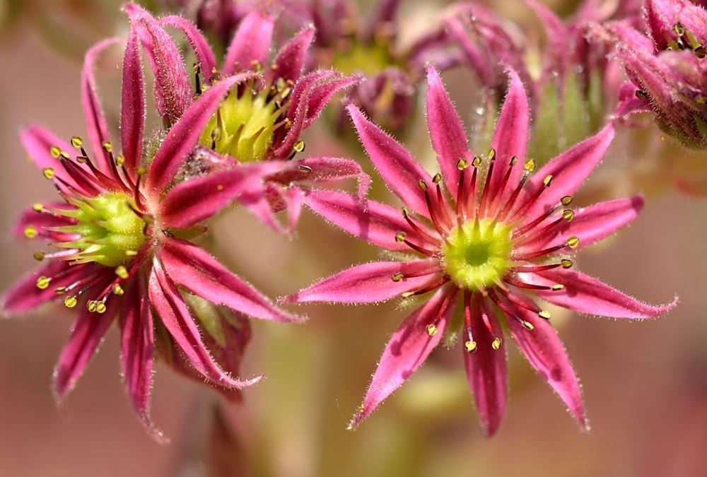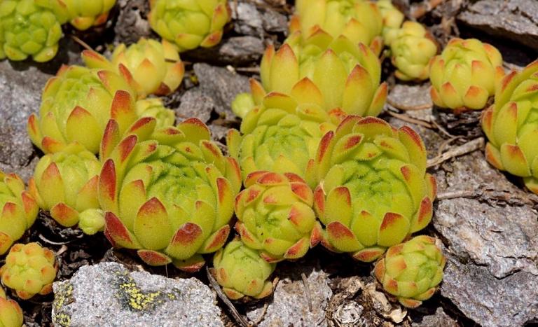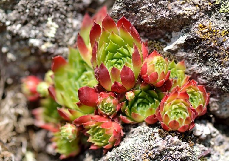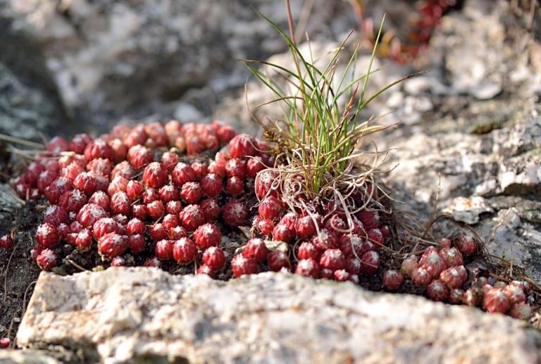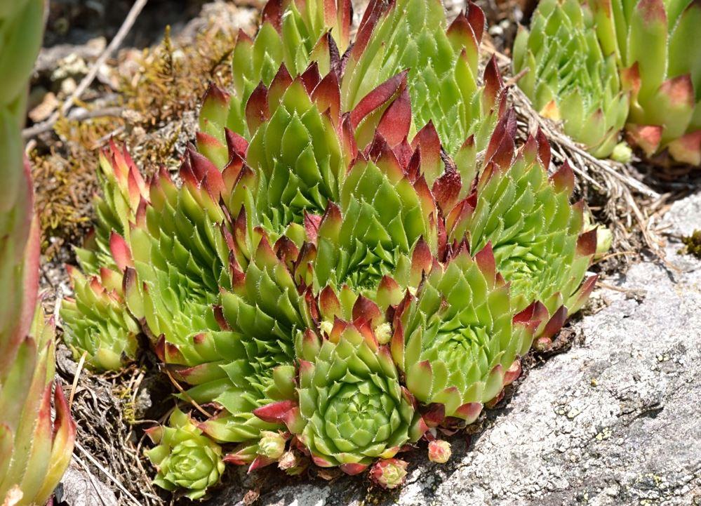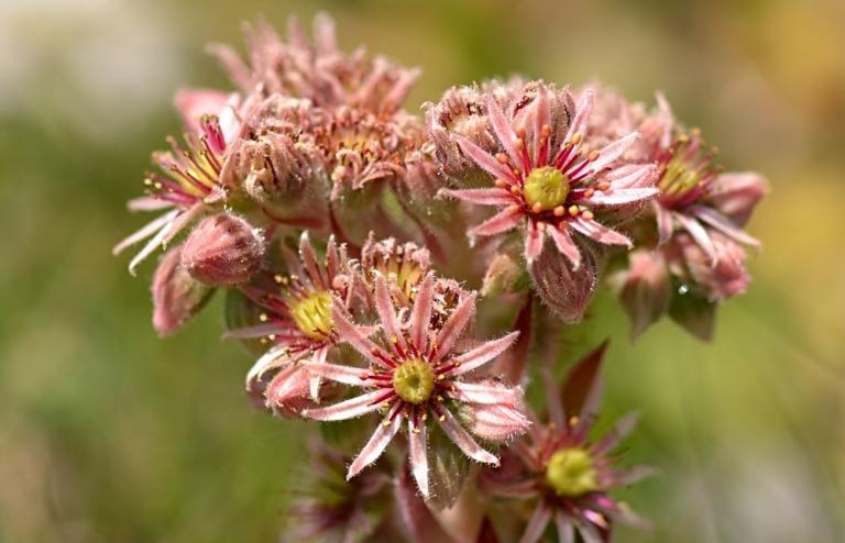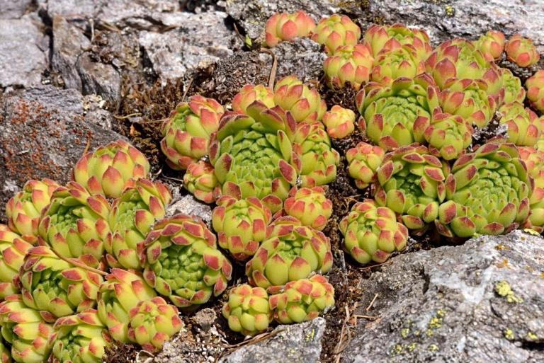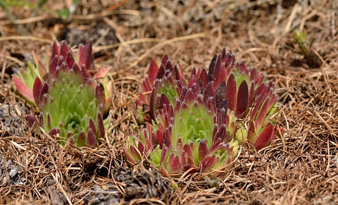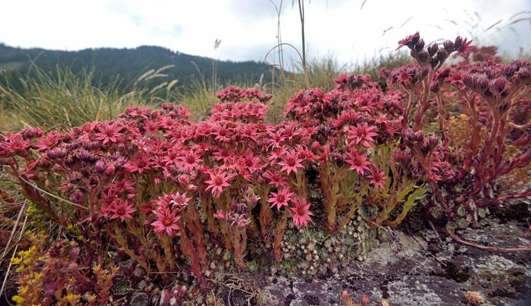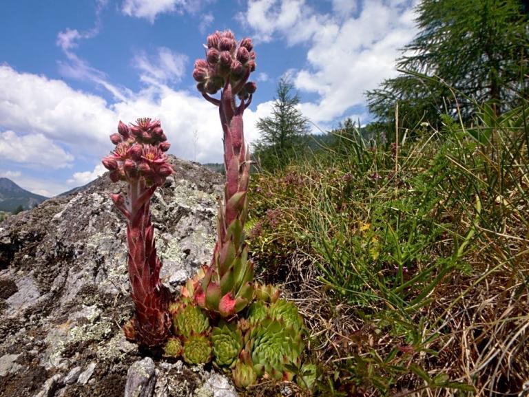 Sempervivum x fauconnetii x S. montanum am Ofenpass in der Schweiz präsentiert sich eine seltene und faszinierende Hybride. Warum findet man solche Kreuzungen nicht häufiger? Ein Beispiel dafür ist Sempervivum x stenopetalum, eine Kreuzung zwischen S. montanum und S. tectorum. Aufgrund ihrer unterschiedlichen Blütezeiten sind solche Kreuzungen selten, da entweder S. montanum später oder S. tectorum früher blühen muss, um sich zu kreuzen. Doch wie heißt es so schön: "Ausnahmen bestätigen die Regel."